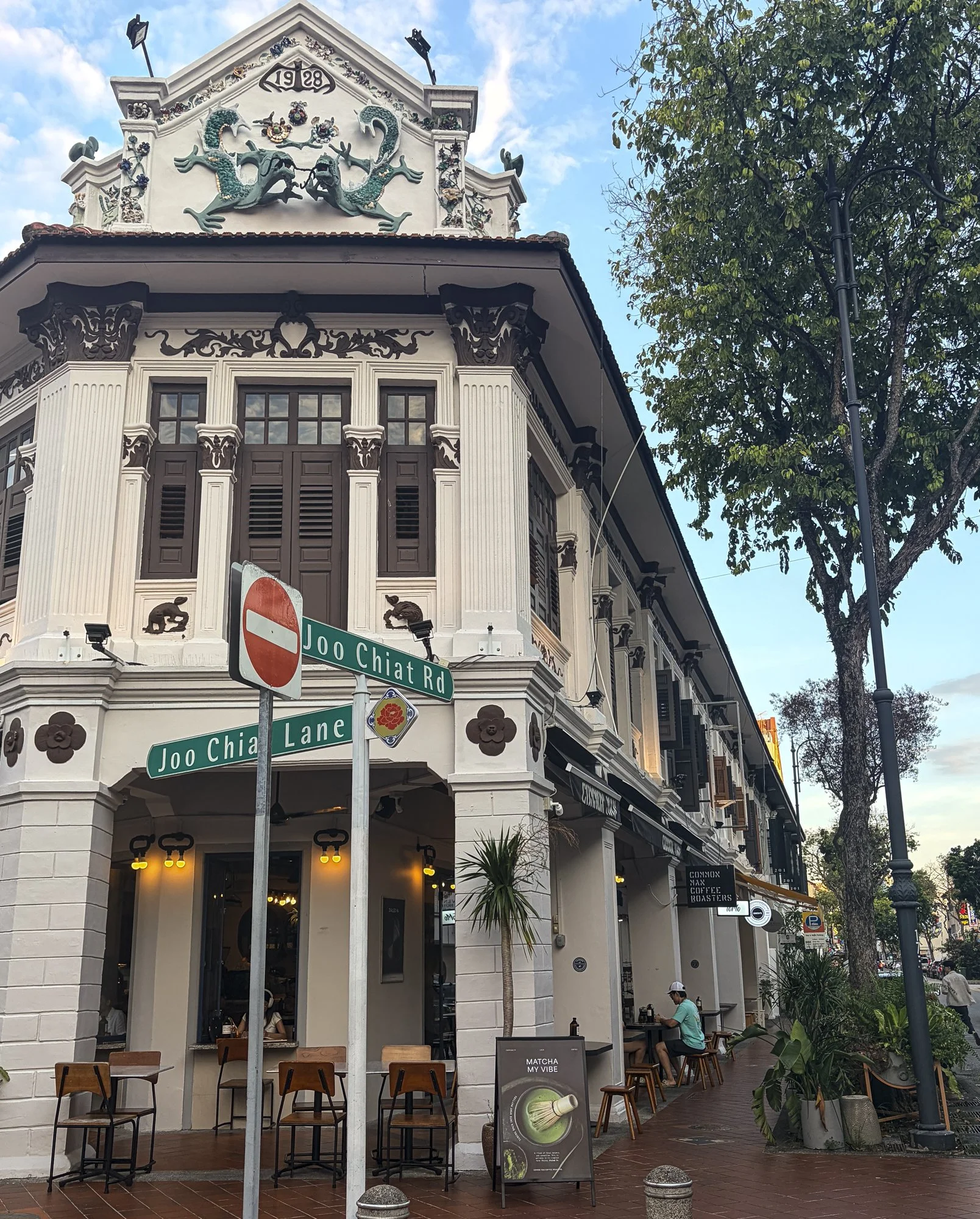 Joo Chiat is known for its iconic and brightly-coloured shophouses along Koon Seng Road. Although these are absolutely worth a stop, I stopped on nearly every street in this neighbourhood for a photo, compelled by the bright colours and vibrant evidence of varied cultural influences.